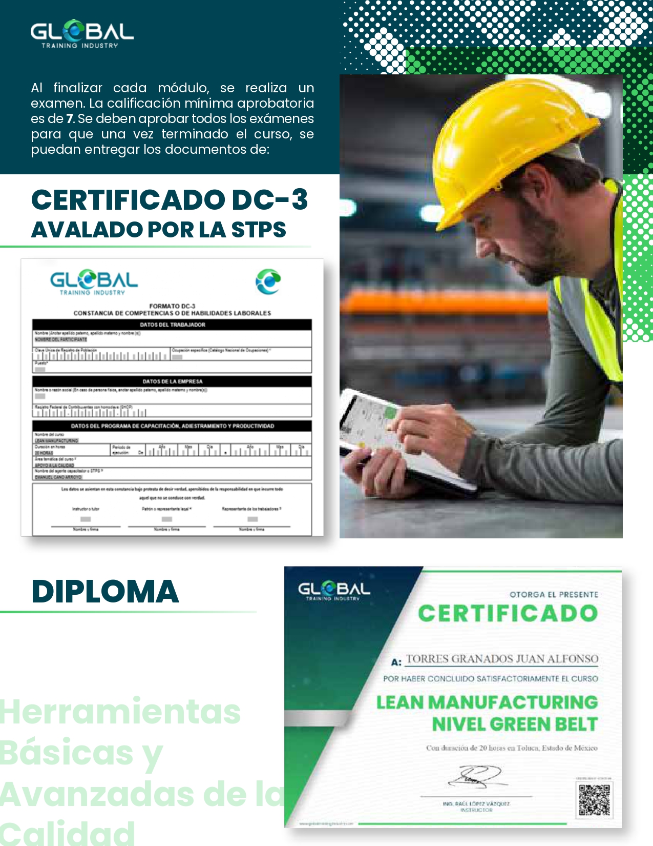 Y se incluye un certificado internacional Green Belt for Council Six Sigma, para el cual se debe entregar un proyecto, mismo que se desarrollará con la asesoría de nuestros capacitadores.